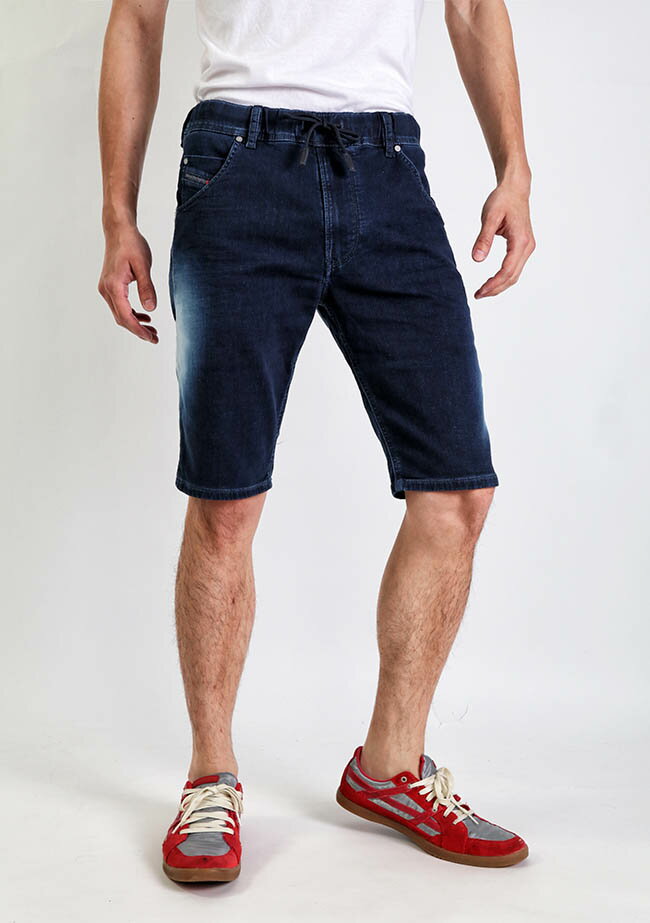 【モデルデータ:身長180cm:体重67kg:W30インチ着用】 DIESEL ディーゼル JOGG ジョグジーンズ スウェットデニム KROOSHORT ショートパンツ ハーフパンツ インディゴ キャロットレギュラースリムモデルで人気のあるkrooleyシリーズをショートスタイルに落とし込んだモデル。