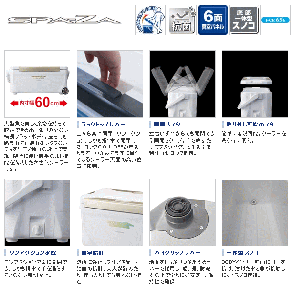 最大60cmの魚を曲げずにまっすぐ収納できる6面真空パネル採用によりI-CE値65hという非常に高い保冷力を誇ります。